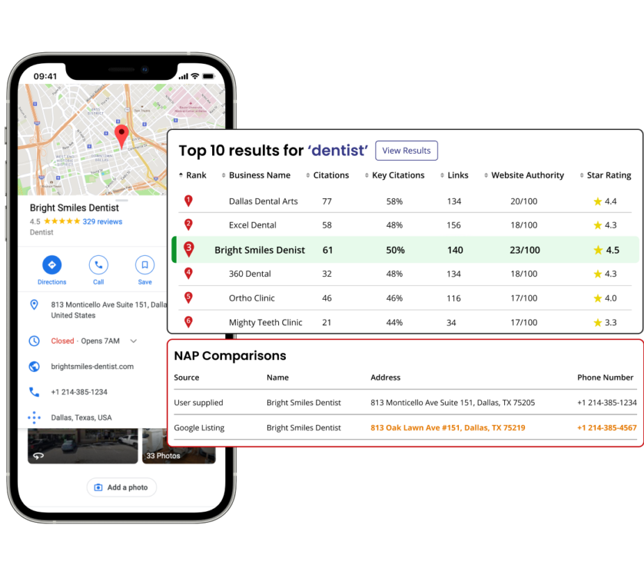 Duplicate Google Business Profile (GBP) listings and NAP errors harm local search performance. Google Business Profile Audit reveals these errors so you can take action right away.