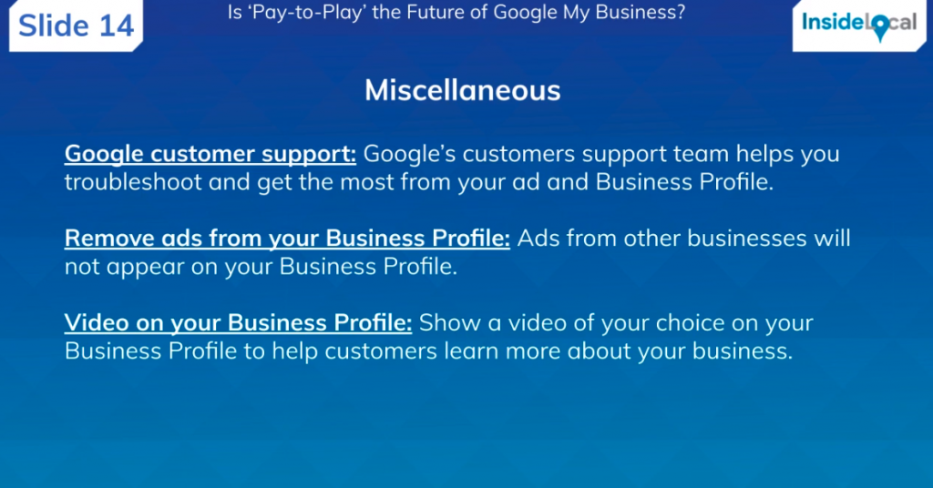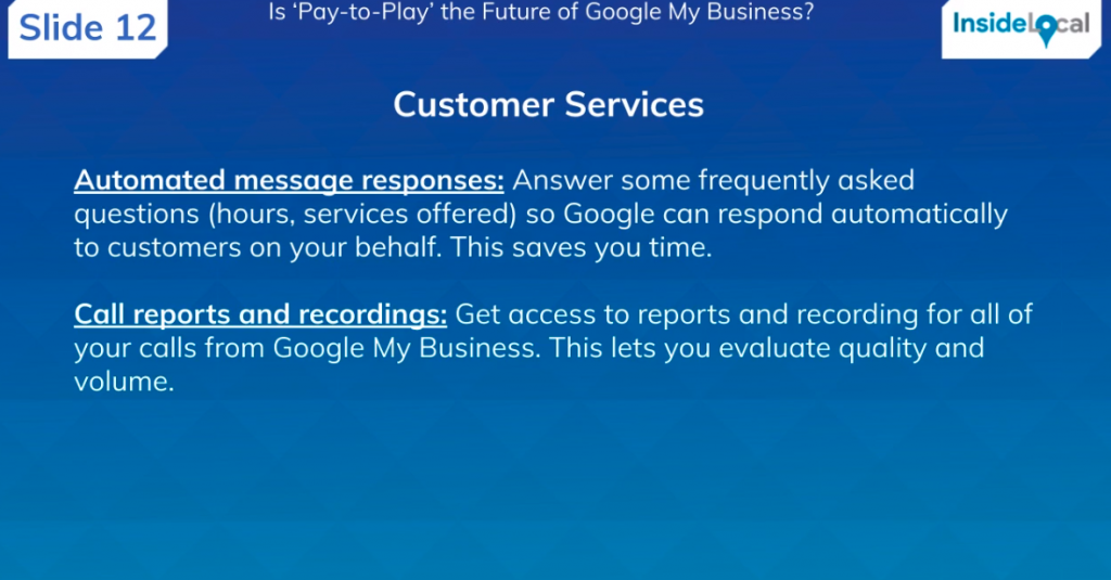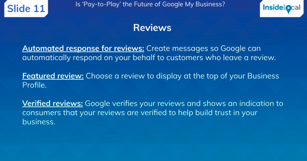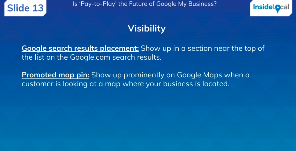 Greg: “I don’t think it will ever be fully pay-to-play. If we’re lumping everything together and saying, ‘Do you have to pay-to-play to be in Google My Business?’, I think the answer is no. But will there be pay-to-play elements? Yes, I think definitely, it’s a no brainer that we’ve been talking about for years. But I don’t think you’ll have to pay-to-play, I think it will be listing enhancements that may vary on which vertical you’re in.”